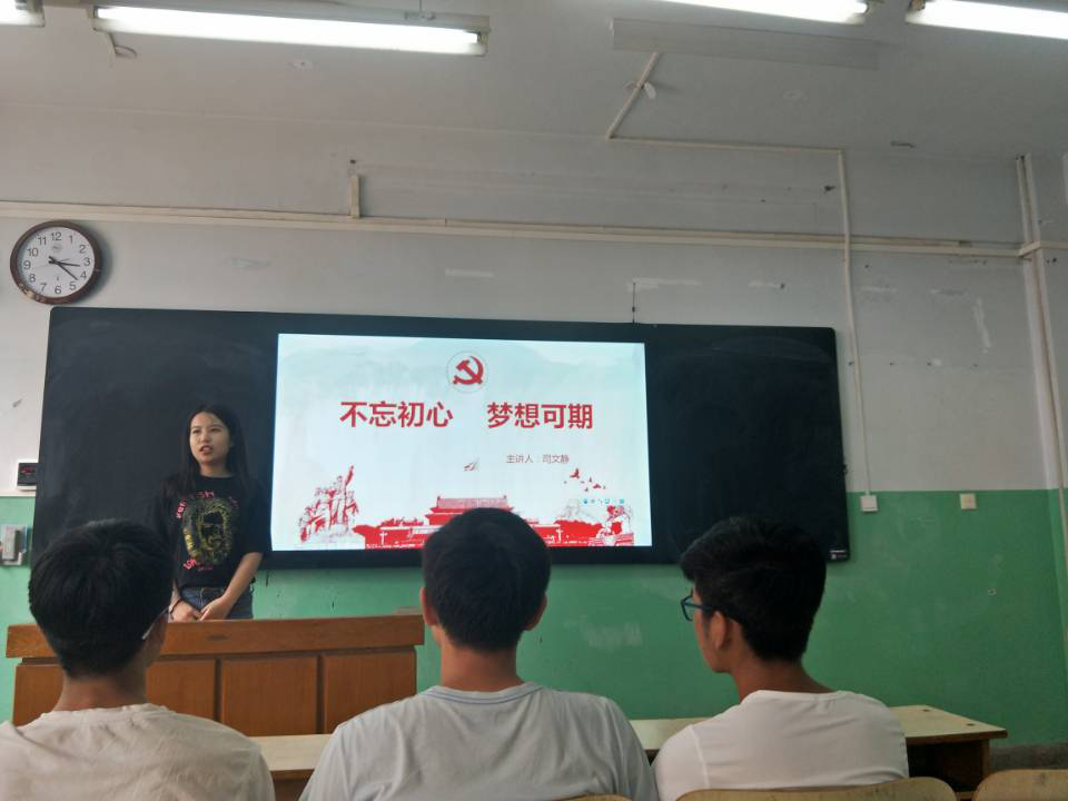 5月11日下午3点,91做爱 学生第二党支部组织党员在教学楼2205对城乡规划171班举行了一次微党课,本次的党课主题是“不忘初心,梦想可期”。主讲人是党员王佰亿和李蕾同志。