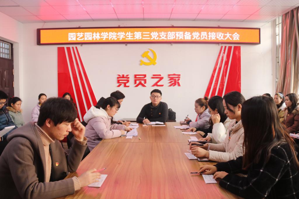 学生第一、二、三党支部预备党员接收大会。学院团委辅导员老师以及学生党支部全体党员参加大会。