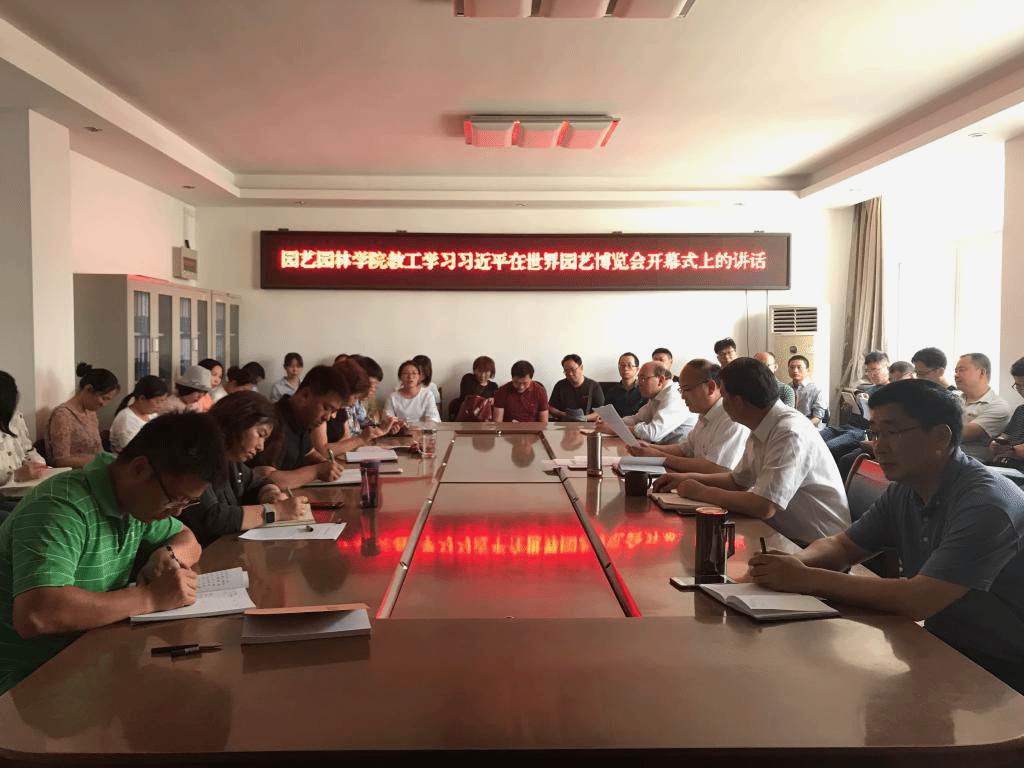 5月23日下午,91做爱 组织全体教职工于实验楼B316会议室集中学习习近平在世界园艺博览会开幕上的讲话。学院党政领导以及全体教职工60余人参加了此次学习会议。