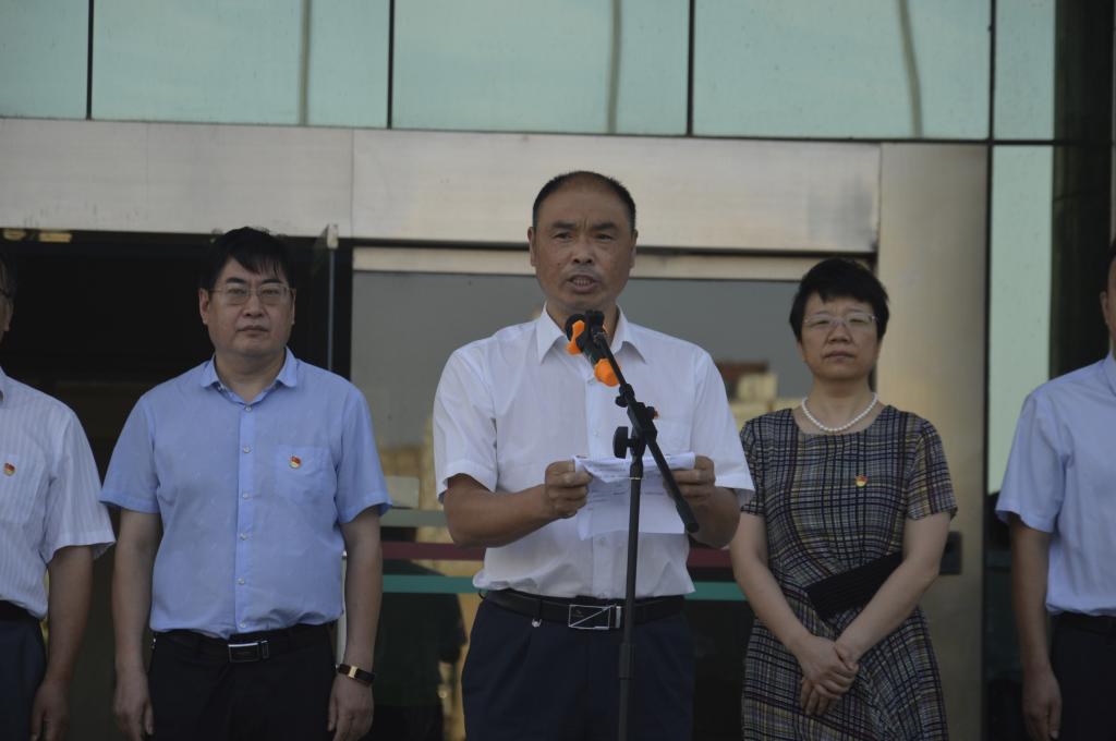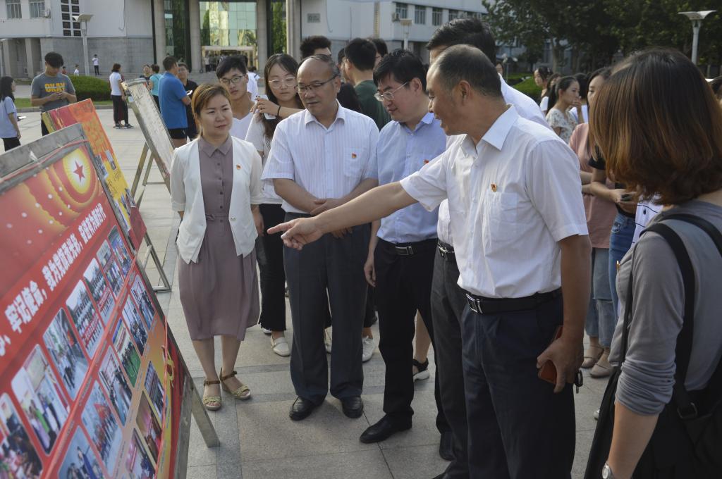 然后,体育学院党委书记徐现峰同志发言,他通过回顾中国共产党带领中国人民历经风雨、顽强拼搏的光辉历程,指出青年是祖国的未来,民族的希望。他号召广大青年学生做到有理想、有本领、有担当,为实现中华民族伟大复兴的中国梦而努力奋斗。随后,外国语学院党委书记徐兆栋同志带领全体党员重温入党誓词,旨在让全体党员牢记入党誓词,进一步坚定理想信念,继承和发扬党的光荣传统和优良作风。升国旗结束以后,各学院负责人以及学生一起参观“我为党旗添光彩”主题作品展。