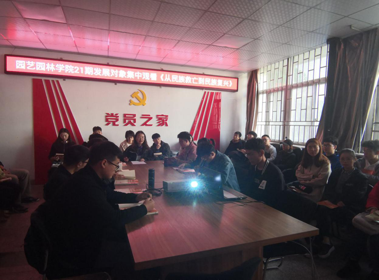 组织第21期发展对象于实验楼B106集中收看影片《从民族救亡到民族复兴》,会上针对“学习新思想,争做担当民族复兴大任的时代新人”和“胸怀报国志,永远跟党走”这两个专题进行学习研讨。