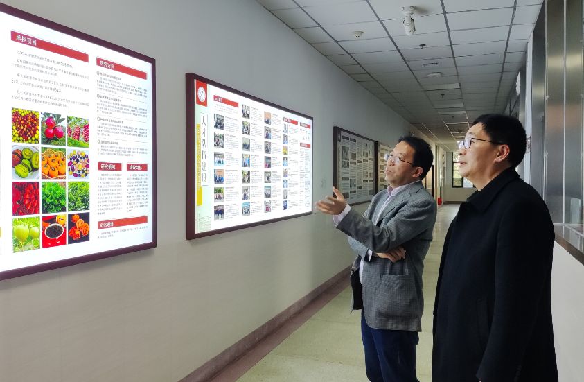 别教授带领参观了“果菜园艺作物种质创新与利用全国重点实验室”,实验室以柑橘、桃、苹果、梨、番茄、南瓜等园艺作物为研究对象,发掘并精准评价优异种质资源,解析砧木接穗互作机理、果实品质形成和保持调控机理,发掘嫁接亲和性、优质、抗性等关键基因,突破基因编辑和分子设计育种等关键核心育种技术。
