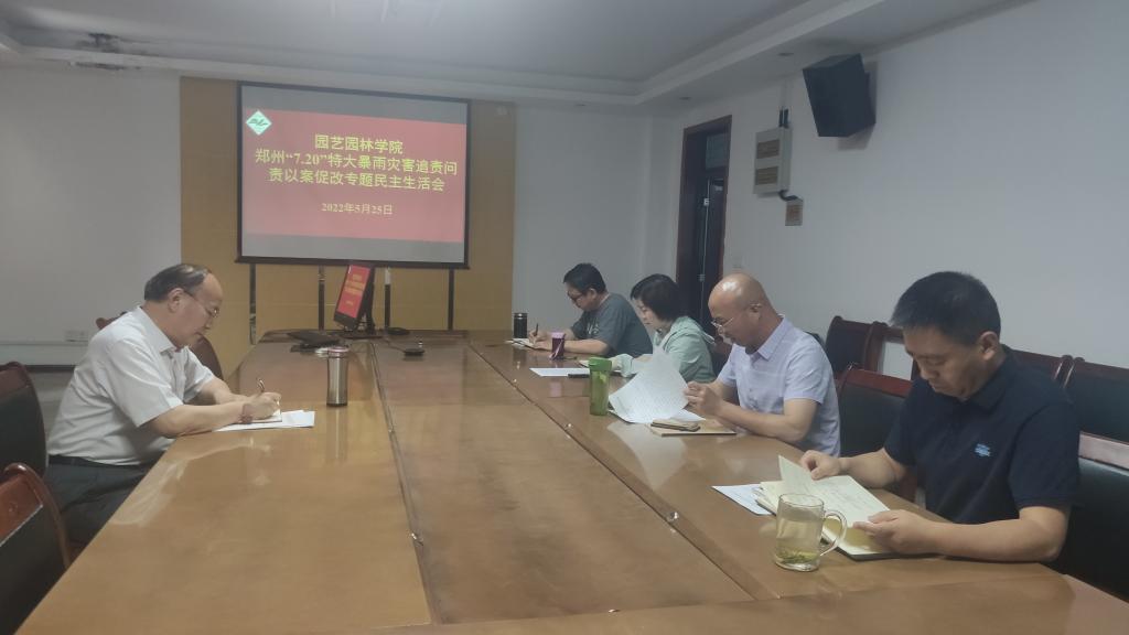 在实验楼B段316会议室召开郑州“7·20”特大暴雨灾害追责问责以案促改专题民主生活会,领导班子成员参加会议。会议由党委书记郜庆炉主持。