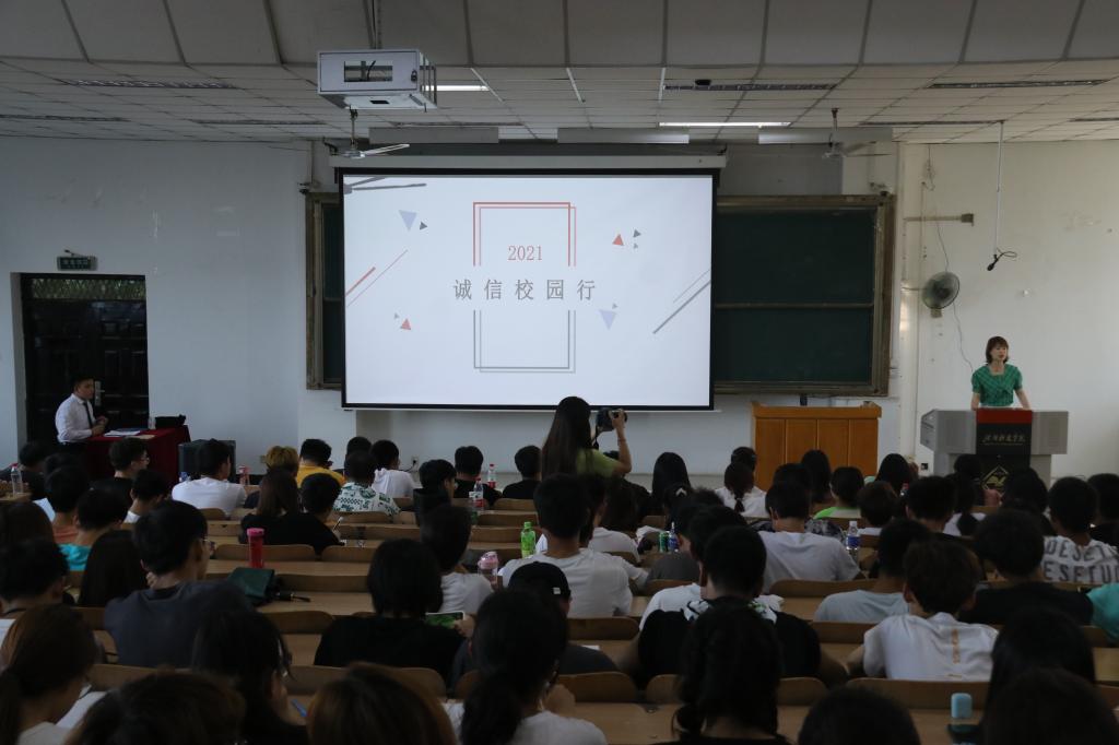 在零号教学楼零和三召开“诚信教育校园行”宣讲活动,会议由团委书记王莹主持。