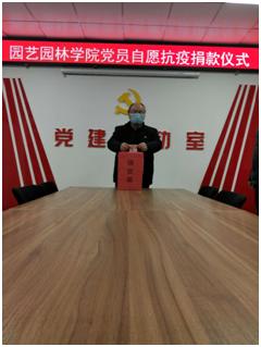 党建活动室举行了党员自愿抗疫捐款仪式,党委书记郜庆炉、院长周俊国、党委副书记朱黎娅和在校内居住的部分教工党员参加了捐款仪式。