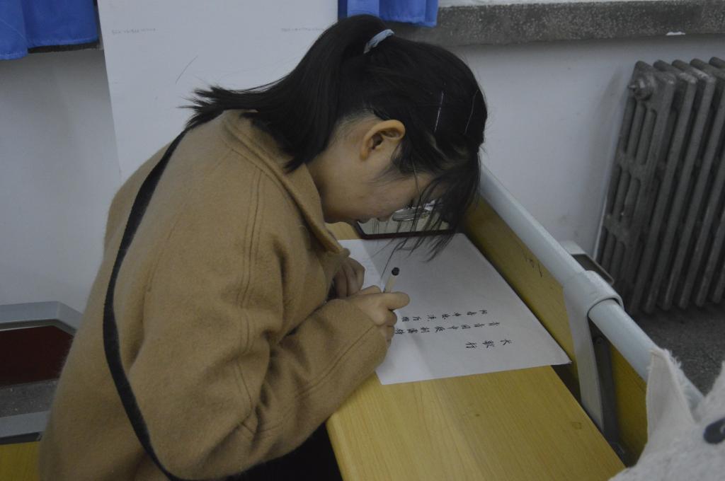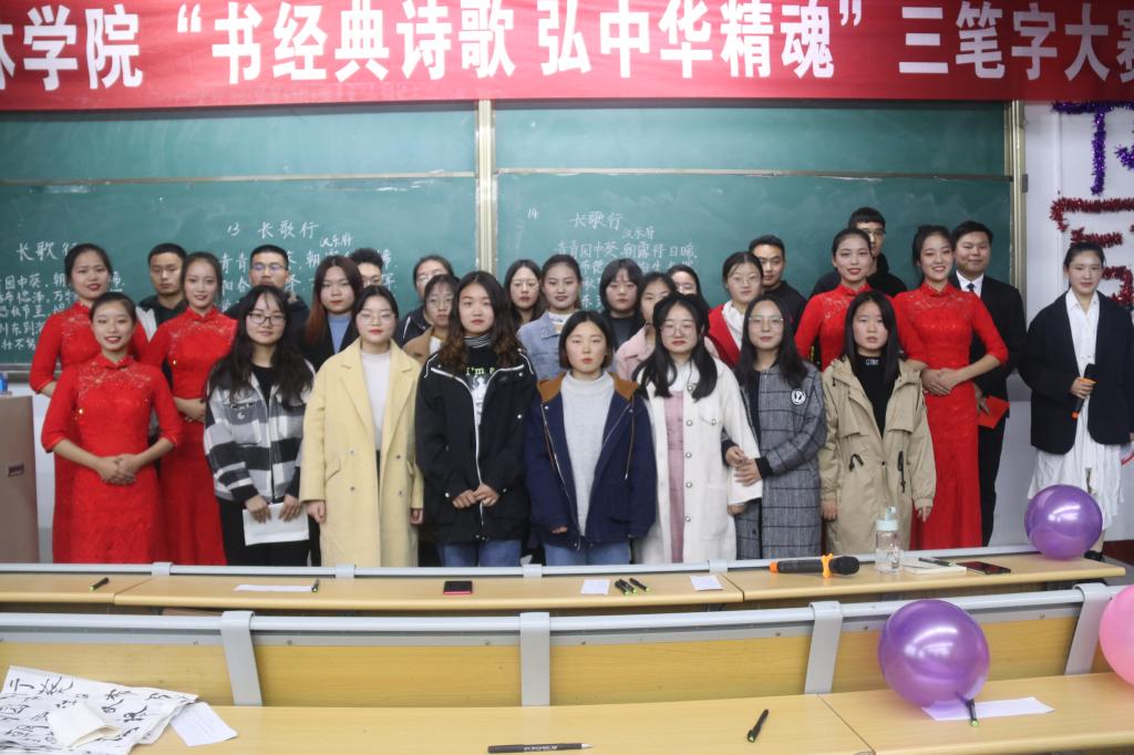 在一合二教室举办以“书经典诗歌,弘中华精魄”为主题的三笔字大赛。本次大赛由学生代表担任评委,五十余人参加比赛。