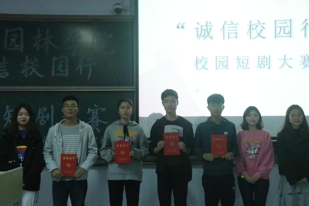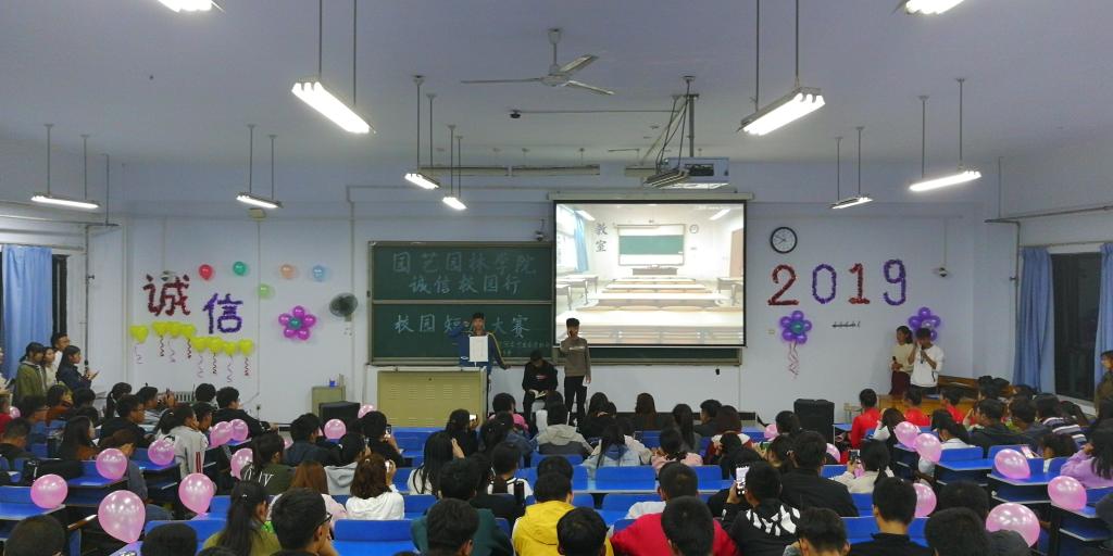 比赛开始,晋级的八个团支部分别从诚信校园、诚信考试、拾金不昧、校园贷、高利贷风波等为主题,用生动有趣的形式演绎了温情、友情和同学情,告诫同学们诚信做人,踏实做事。《无人监考》告诫同学们要诚信监考;《让诚信之花绽放心间》传递拾金不昧的优秀品质……一个个精彩的表演让观众们身临其境,感慨至深。经过激烈的角逐风景191夺得一等奖,园林194、园林192获得二等奖,风景192、园艺191、园艺192、园林193荣获三等奖。