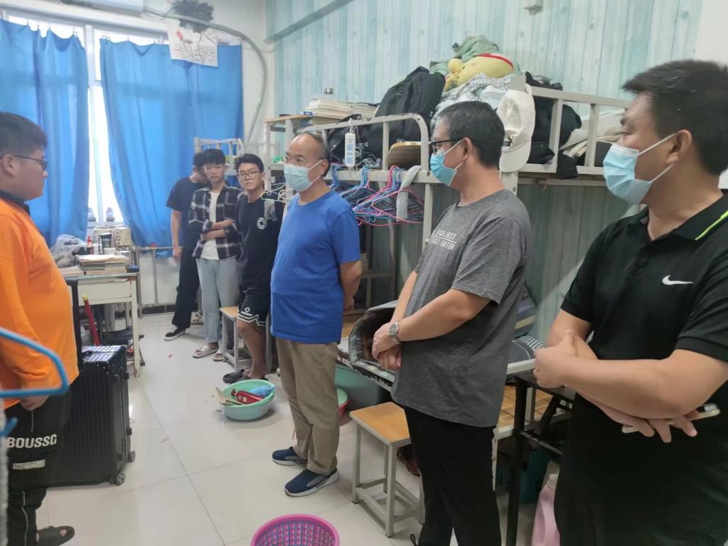 为加强校园安全管理,提高学生宿舍安全防范意识,有效推进学校疫情防控常态化要求,8月31日,我院党政领导班子及全体辅导老师走访学生宿舍。