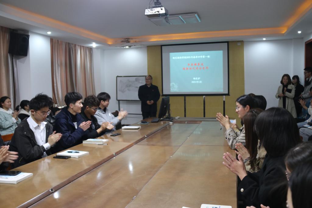 党委书记郜庆炉在实验楼B段316会议室以“学英雄事迹做新时代有为青年”为题为各年级学生代表上了“开学第一课”。
