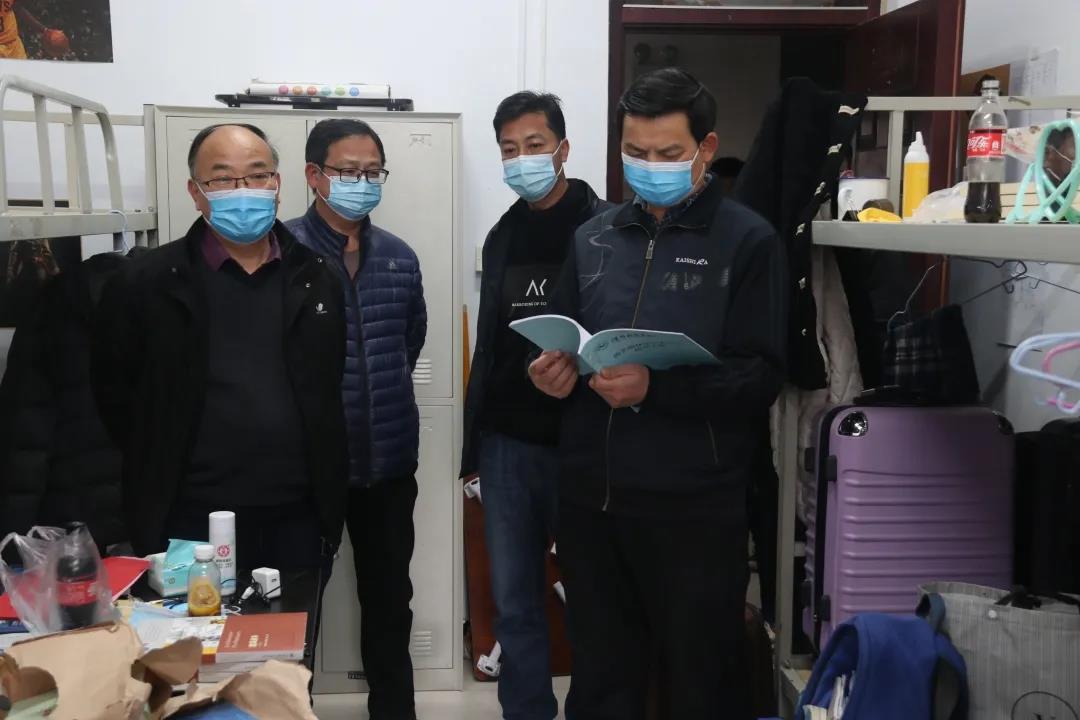 走访宿舍期间,师生亲切交流,并进行了开学第一课现场教学。学院领导、老师询问学生假期学习和生活情况,关心学生是否全部安全到校,并嘱咐学生尽快调整作息时间,以充沛饱满的精神状态迎接新学期的学习生活。交流中,郜书记强调,学生返校后要积极配合学校做好疫情防控及“双防”工作,新的一学期要继续加强思政教育,认真学习四史,以全新的面貌迎接建党100周年。周院长亲切询问着17级学生的考研情况,深入了解毕业生面试准备情况和就业去向。在走访过程中,朱书记提醒同学们要坚持“非必须、不外出”的原则,要严格遵守学校疫情防控相关规定,做好疫情防控常态化下的自我管理和自我防护,养成良好的生活习惯,以全新的精神面貌迎接新学期。沈军院长主要从宿舍卫生、禁止使用大功率用电器等几个方面提醒学生共筑文明、卫生宿舍。