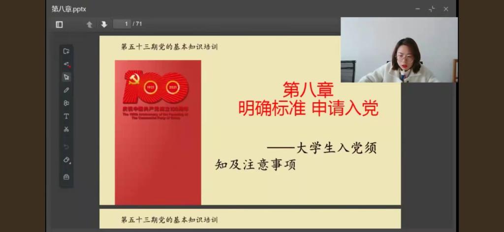 辅导员赵艳芳于线上为第五十四期入党积极分子讲授“明确标准,申请入党”主题党课。