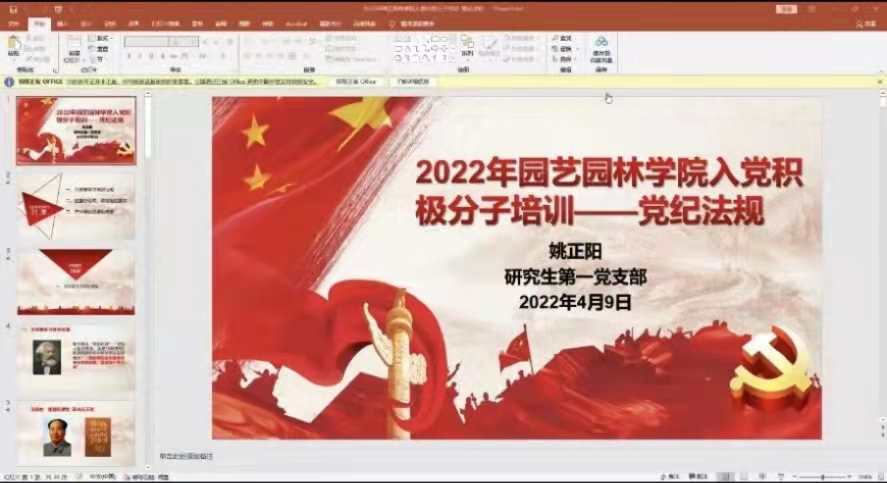 研究生第一党支部书记姚正阳于线上为第五十四期全体积极分子讲授党纪法规主题党课。