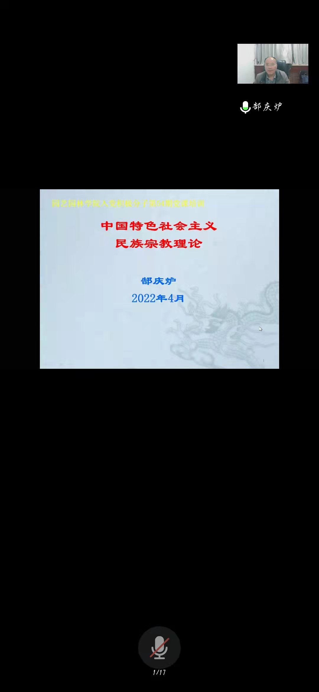 党委书记郜庆炉于线上为第五十四期全体积极分子讲授关于马克思主义宗教观和党的宗教政策主题党课。