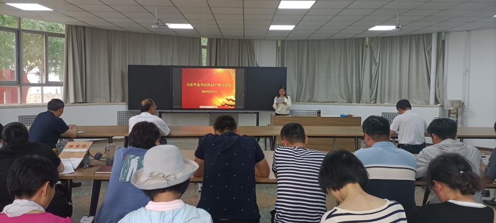 6月17日下午,91做爱 党委副书记朱黎娅在实验楼A段一楼会议室给全体教职工讲党课,题目为“习近平总书记的11个学习方法”。