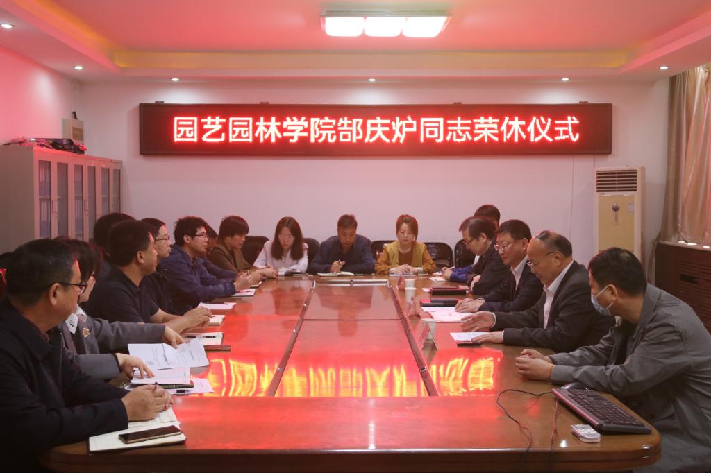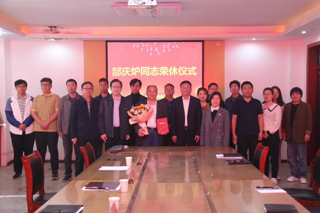 在实验楼B316会议室举办郜庆炉同志荣休仪式。校党委副书记何松林、全体班子成员、教师及学生代表参与仪式,仪式由学院院长陈红卫主持。