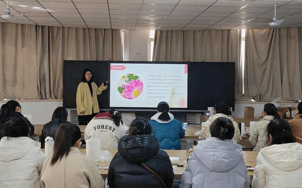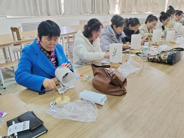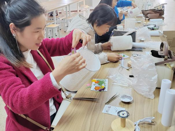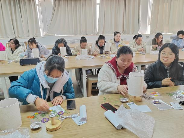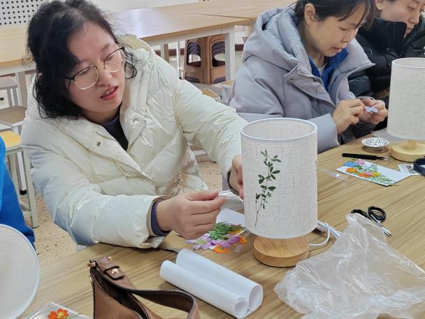 芳华悦己,向美而生。活动伊始,刘砚璞老师简要介绍了压花艺术,讲解了压花台灯的制作流程。压花台灯DIY现场,学院女教职工热情高涨,充分发挥自己的创造力和想象力,利用提供的材料和工具,通过精心挑选、巧妙搭配,创作出了一盏盏独具匠心的压花台灯。