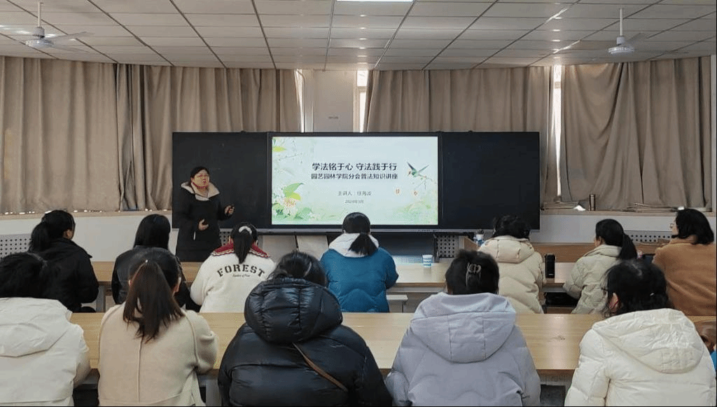 学法铭于心,守法践于行。学院邀请文法学院任海波博士为全体女教职工开展“学法铭于心 守法践于行”普法知识讲座。讲座中,任海波深入浅出地讲解了《中华人民共和国民法典》《中华人民共和国妇女权益保障法》《河南省女教职工劳动保护特别规定》等与女教职工息息相关的法律法规,并结合实际案例,进行了生动有趣的解读。