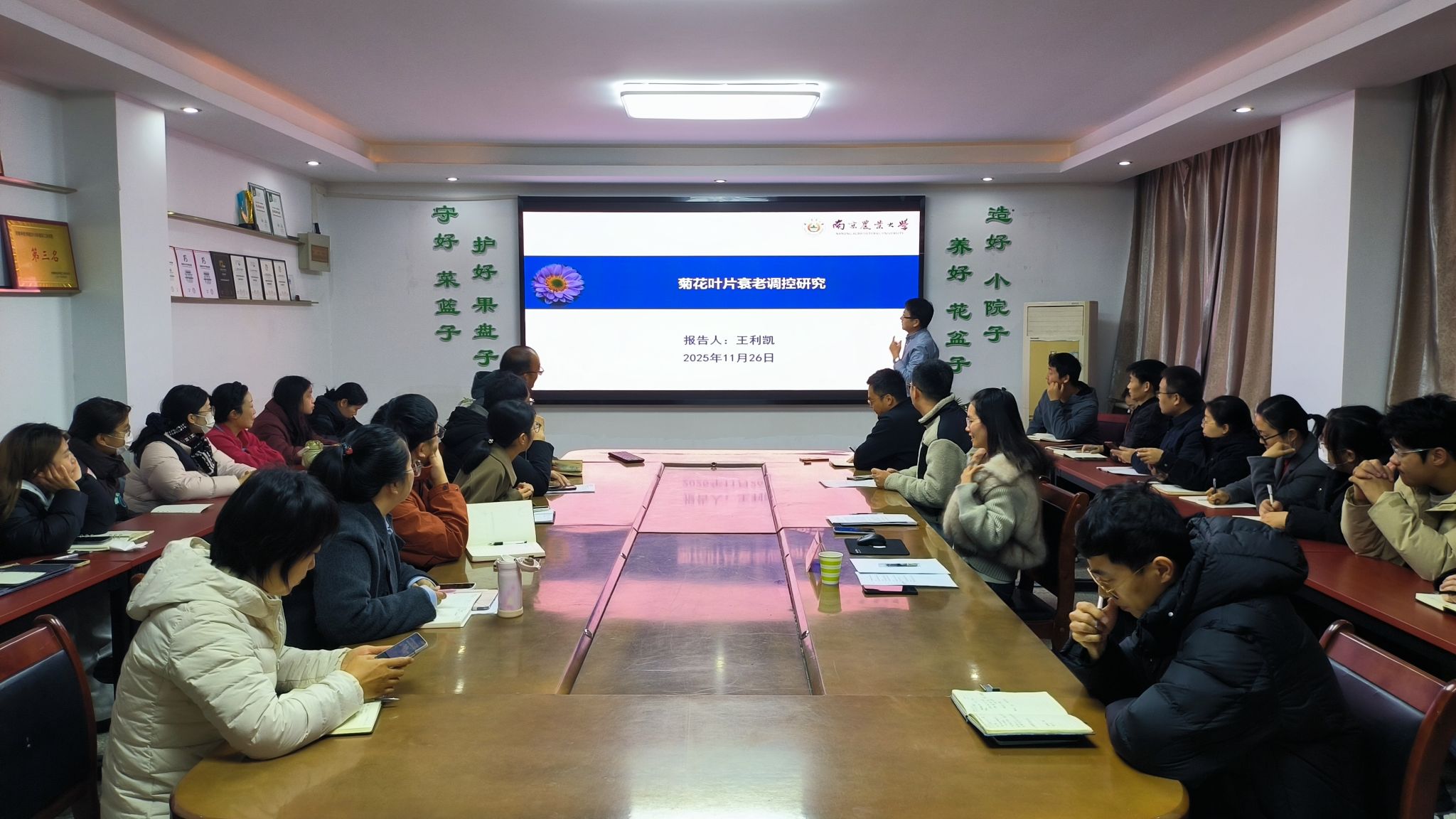2025年11月26日,我院特邀国家青年人才计划入选者、南京农业大学王利凯教授在实验楼B316会议室做学术报告并开展基金撰写指导。基金申报教师及相关专业研究生参会,会议由学术副院长袁敬平主持。
