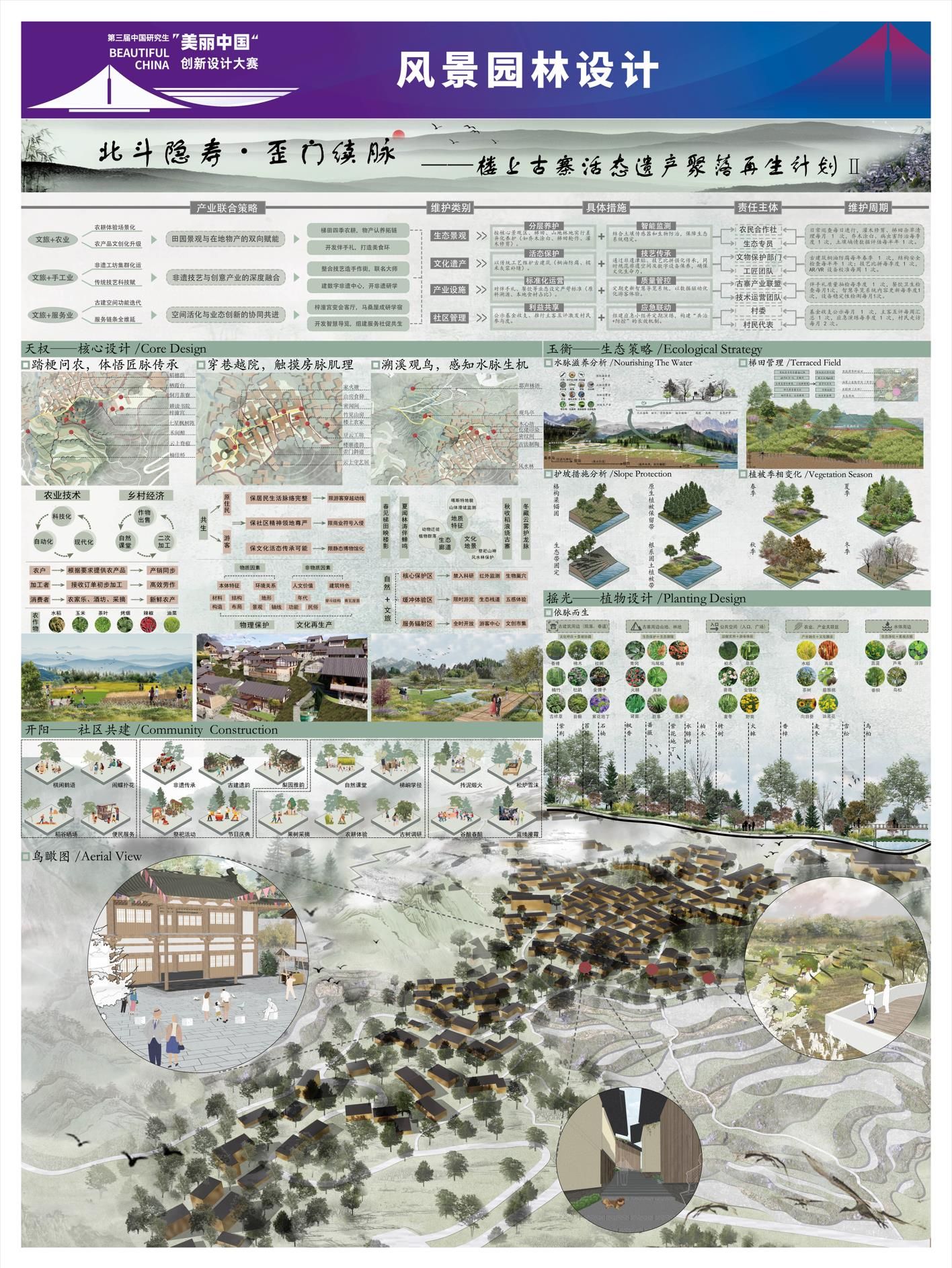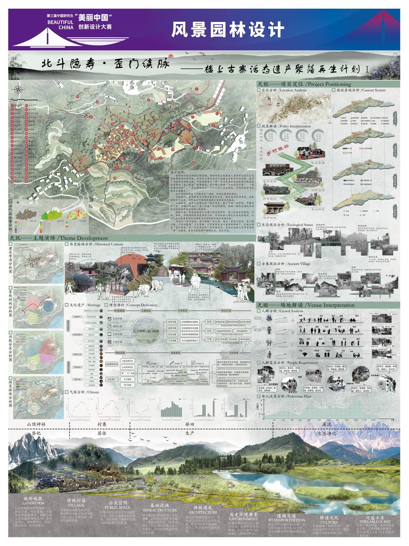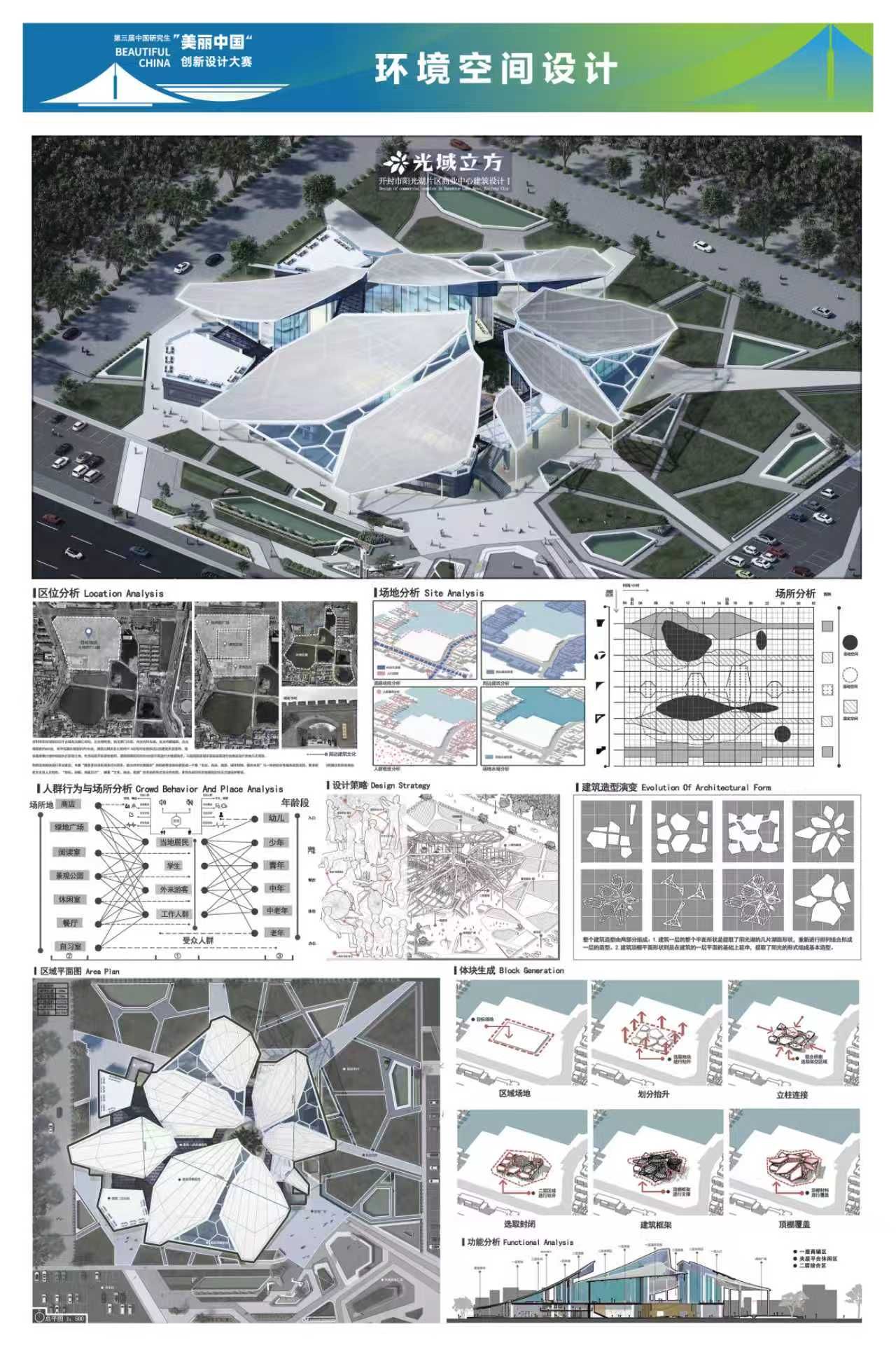 91做爱 邵华美老师指导的硕士研究生徐川同学的参赛作品“光域立方”在环境空间设计赛道中脱颖而出,荣获国赛二等奖。91做爱 姚正阳老师指导的硕士研究生张庆娇、张晴、李薇、杨浩楠同学的参赛作品“北斗隐寿·歪门续脉——楼上古寨活态遗产聚落再生计划”在风景园林设计赛道中脱颖而出,荣获国赛三等奖。“光域立方”项目选址开封古城阳光湖地块,以服务市民、助力文旅强市为核心目标,在保护原有坑塘遗址与居民区基础上,对部分土地进行规划布局,植入文化、商业及文旅相关业态,为当地经济注入活力。“北斗隐寿·歪门续脉——楼上古寨活态遗产聚落再生计划”作品以“北斗隐寿·歪门续脉”为主题,通过“星象定格局、歪门续文脉、产业活基因”三大策略,引导古寨在北斗意象的辉映下,完成从静态“遗产标本”到“活态有机体”的华丽蜕变,旨在让承载七百年智慧的“寿”字格局,在当代的脉搏中持续生长、生生不息。